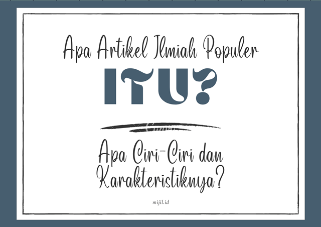 Nah, jika di antara Sobat Mijil belum mengetahui apa sih artikel ilmiah populer itu, mari belajar bersama. Materi yang akan kita pelajari yaitu pengertian artikel ilmiah populer, ciri-ciri dan karakteristik artikel ilmiah populer, dan teknik pengembangan artikel ilmiah populer yang baik dan benar. Yuk, kita simak dengan saksama!